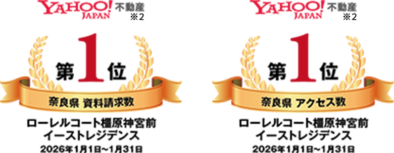 2.ポータルサイトYahoo!不動産において、記載の期間内に掲載中の新築分譲マンションにおけるランキング(Yahoo!不動産調べ)