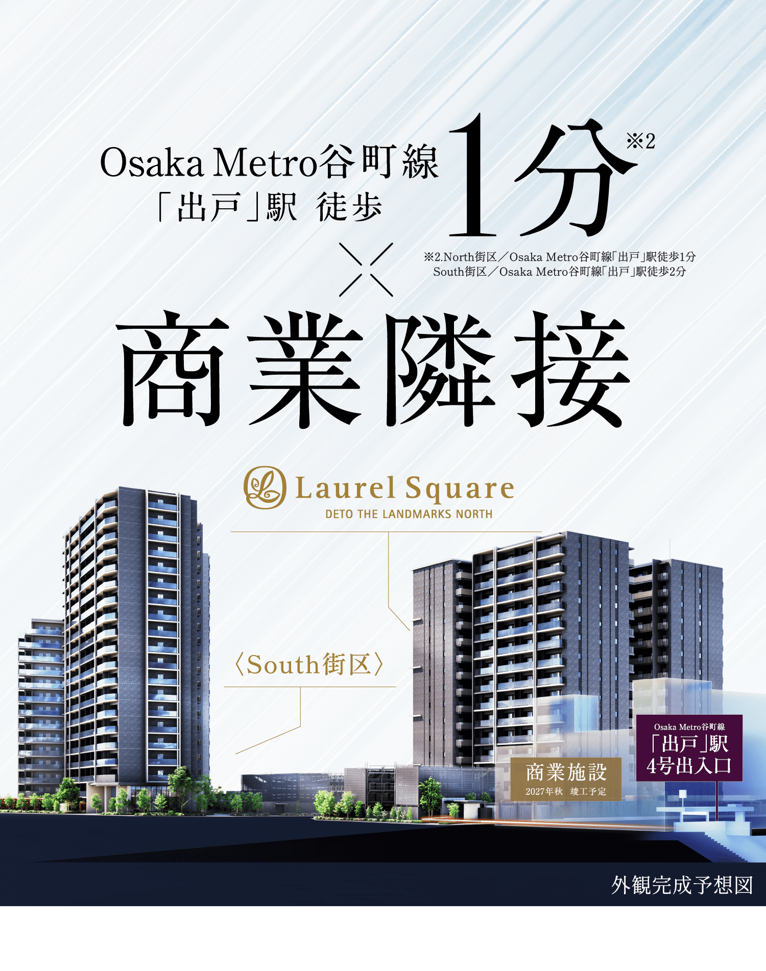 ※2.North街区Osaka Metro谷町線「出戸」駅徒歩1分 South街区Osaka Metro谷町線「出戸」駅徒歩2分