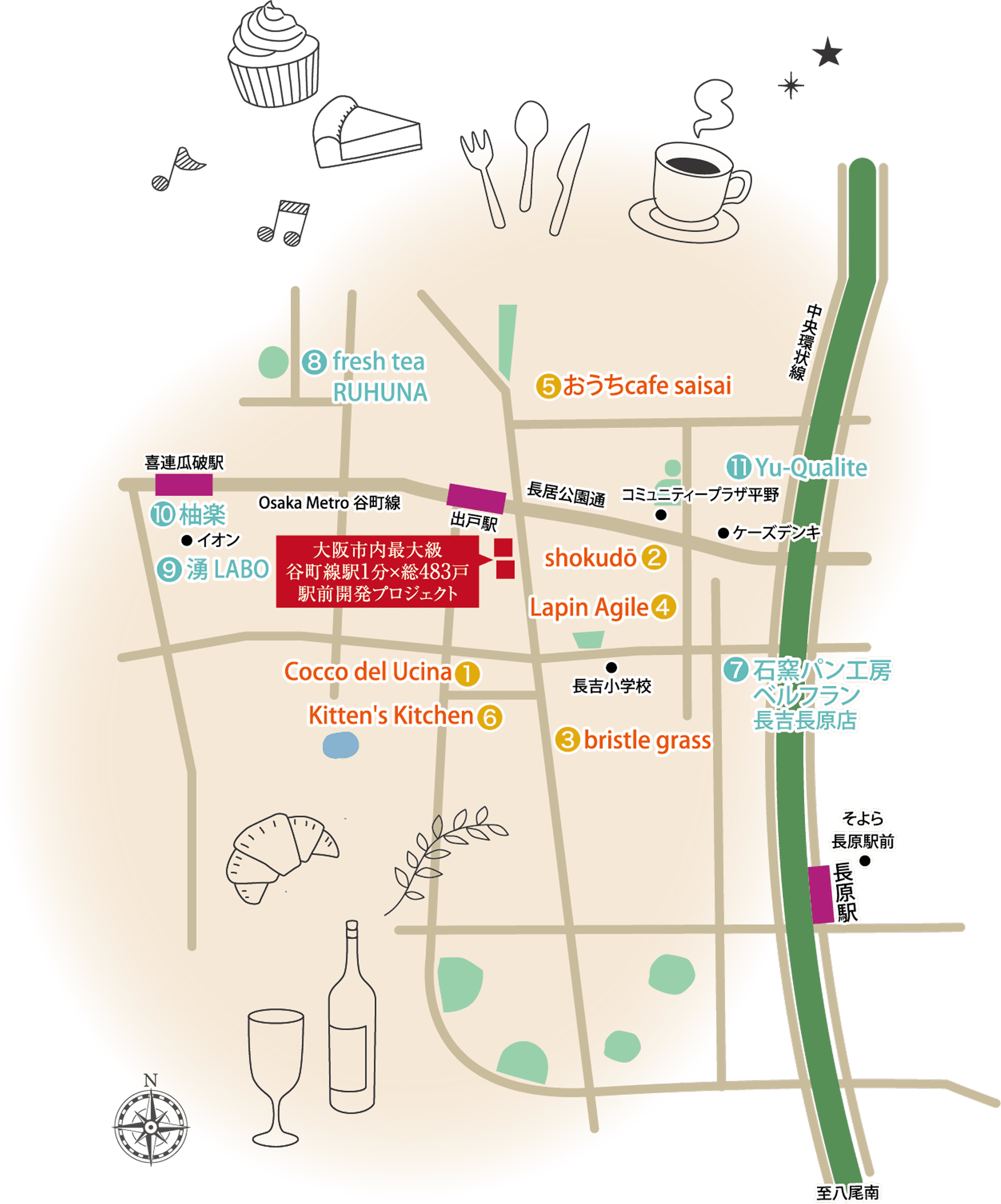 徒歩6〜4分(約420〜320m)