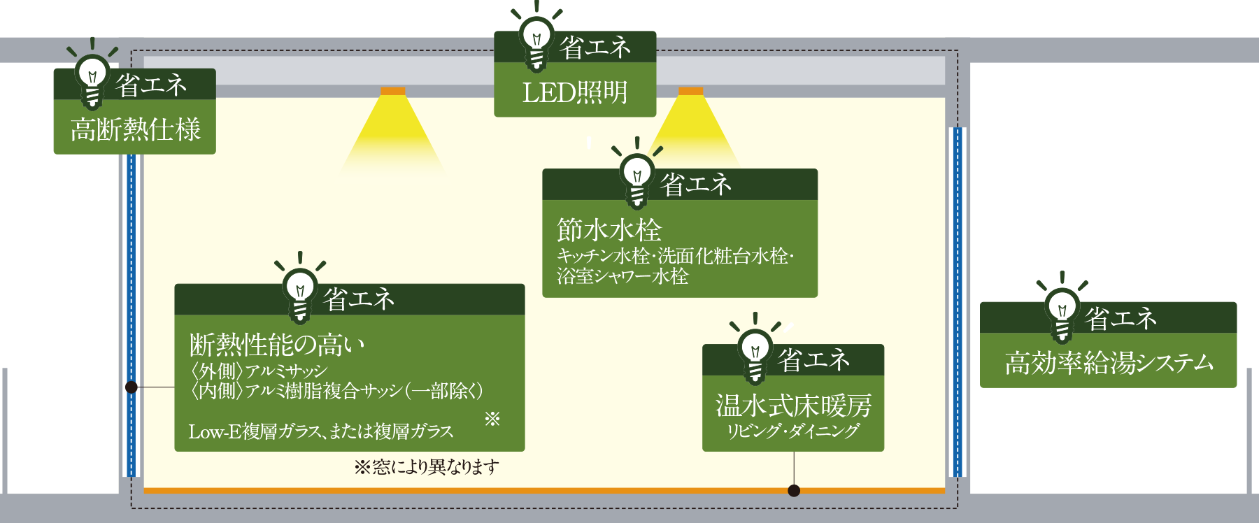 あらゆるシーンにおいて電気やガスの消費を抑えることができます。
