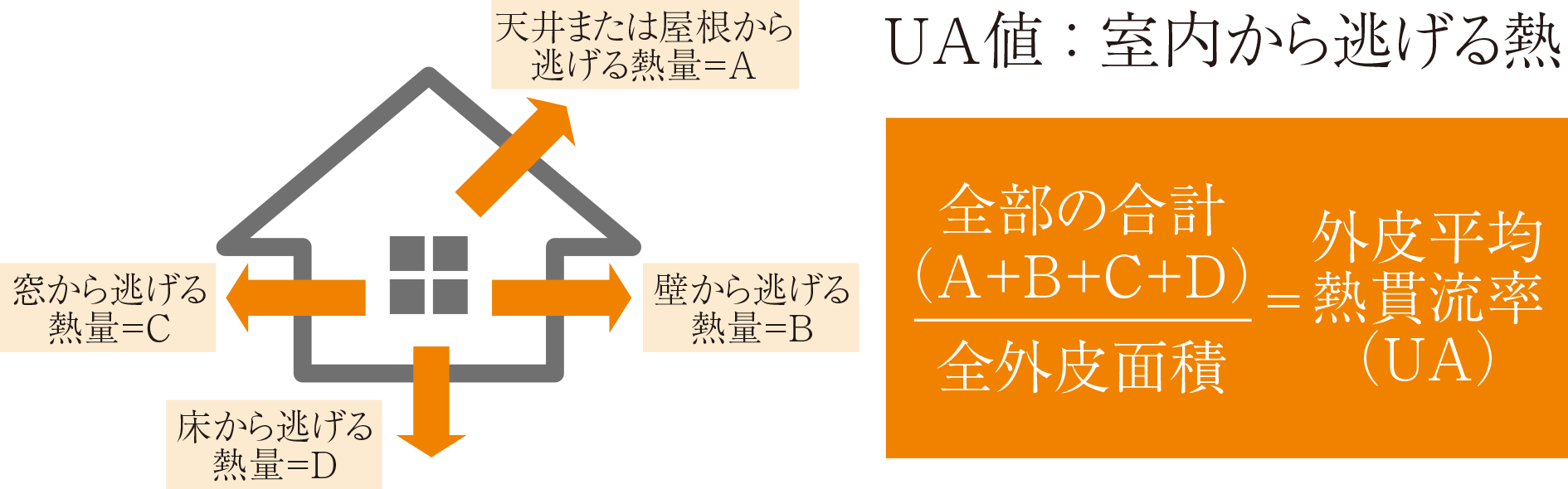 住宅の外壁・屋根・窓等を「外皮」と呼び、その性能をUA値で評価します。UA値が小さいほど断熱性能が高いことを示します。外皮の性能は、その家の住み心地に大きく影響します。