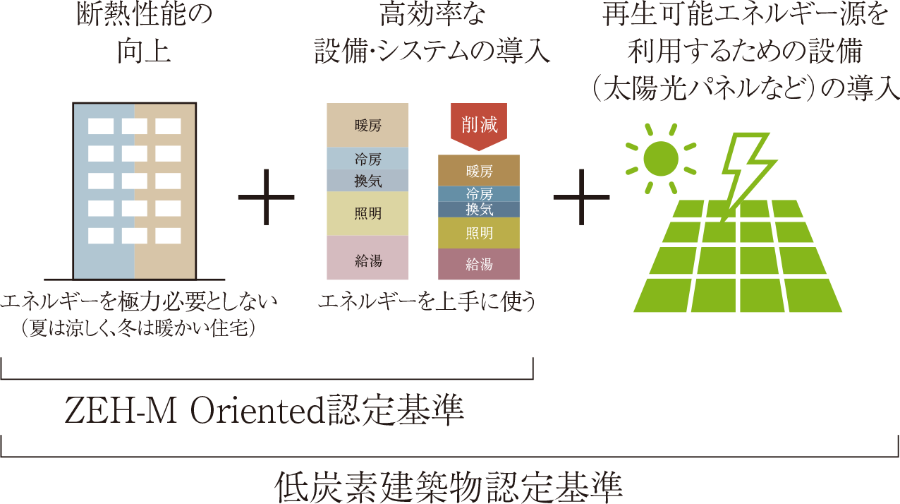 ZEH-M Oriented水準に相当する省エネ性能基準に加えて、